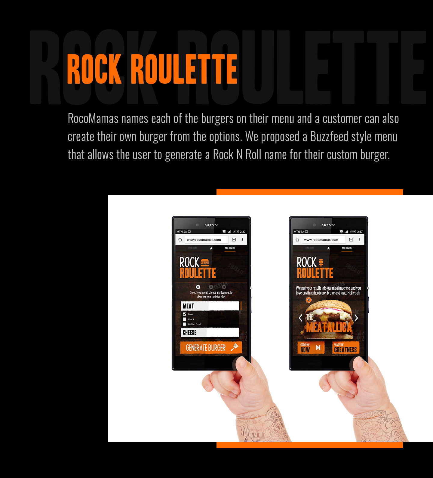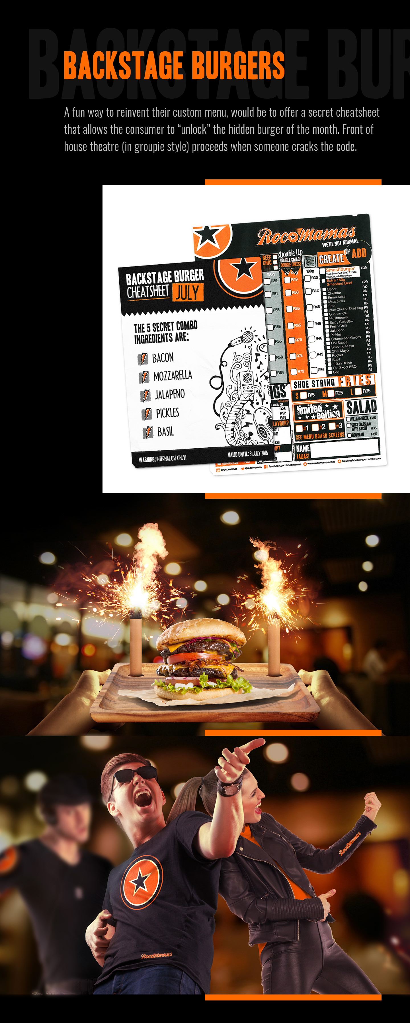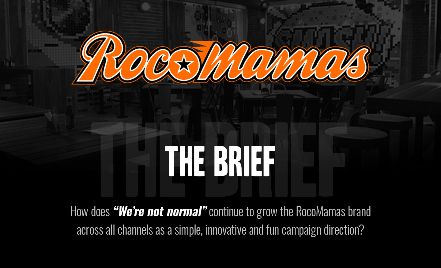 Founded in July 2013, RocoMamas has fast become one of the trendiest restaurants in South Africa, garnering a loyal following of burger enthusiasts. Their brand position of “We’re not normal” is evident in their funky décor, rock ‘n roll vibe, unique menu items and an open-style kitchen where customers can see (and smell) the meals being prepared. This new concept is a result of the growing appetite for hand-made food and a more personalised dining experience. Customers can sit down and soak up the laid-back vibe with a burger and craft beer, or choose to order a takeaway thanks to the speedy service. How does “We’re not normal” continue to grow the RocoMamas brand across all channels as a simple, innovative and fun campaign direction?